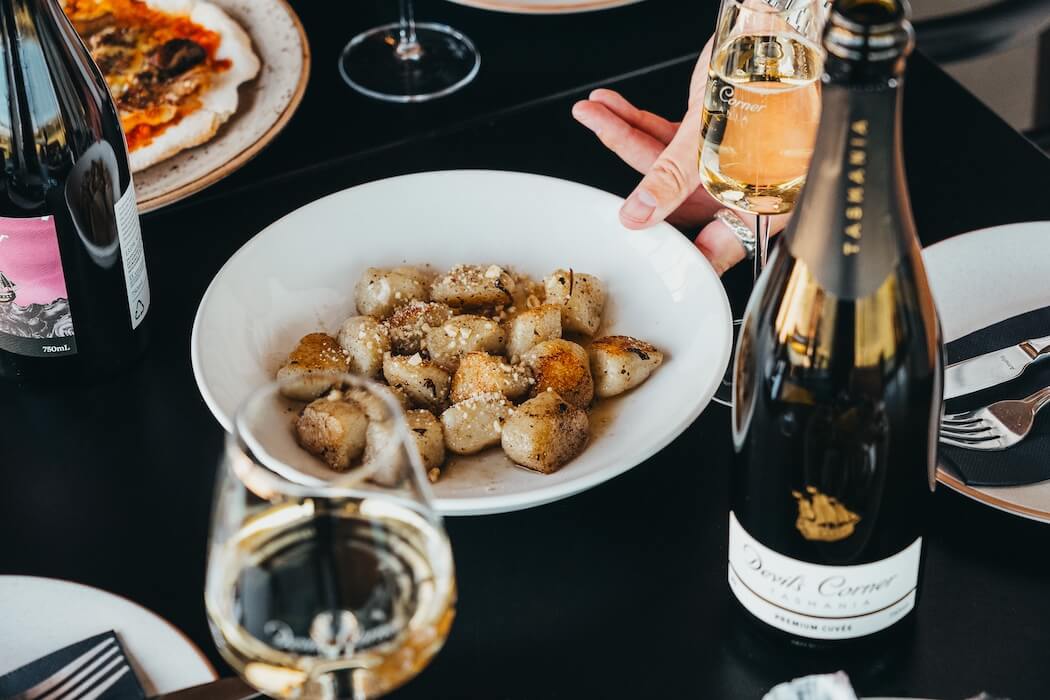 For a main course, the kitchen highlights local ingredients with the Local Venison Pappardelle. Rustic ribbons of fresh pasta are coated in a rich, slow-cooked venison sauce, infused with the flavours of the bush and local mushrooms. It’s a comforting, hearty dish that speaks to the wild nature of Tasmania. For this robust meal, we again recommend the Devil’s Corner Mt Mayson Syrah. The wine’s bold dark fruit, savoury spice, and firm tannins provide the ideal contrast to the intensity of the venison, effortlessly cutting through the richness of the sauce.