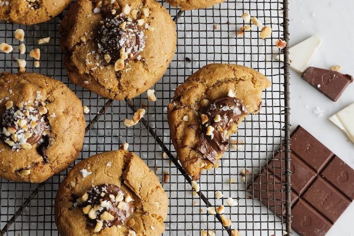 This isn’t just any cookie. It’s a carefully crafted symphony of textures and intense chocolatey flavour, designed to be the ultimate cool-weather comfort. Imagine biting into a soft, rich cookie base loaded with not one, not two, but three layers of glorious chocolate. This cookie features generous chunks of Pana Organic Mylk and White chocolate, melting into pools of delight. But the indulgence doesn’t stop there – it’s also infused with the signature, gooey richness of Pana Organic’s Chocolate & Hazelnut Spread, adding an extra dimension of pure bliss.